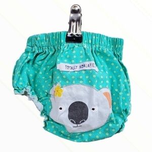 Lot of 2 Cupcakes and Cartwheels sz 6-12m diaper covers bloomers. Totally Koalafied with a Koala bear face on butt, and I Wooly luv you with a little Lamb face on butt. Super cute, ruffled leg, very minor fading ro Koala one. Very cute to add some flare to a simple top or onesie.
