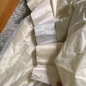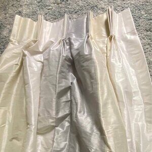 2 Custom 26W x 96L Gray/Ivory LINED Pinch Pleat Silk Curtains