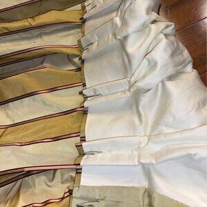 2 Custom-made Striped Weighted Rod Pocket Dupioni Silk Curtains w Button Details