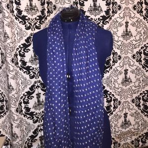 One Royal Blue and White Polka Dotted Scarf and One Light Blue Scarf, $10 a Piece, $16 for Both