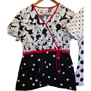 2 DISNEY Mickey & Minnie Scrub Tops sz S