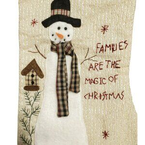 These charming Christmas stockings bring festive cheer with detailed Santa and Snowman appliques. Crafted with care, they are ideal for holiday decorating. New without tags.