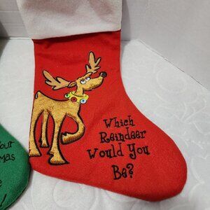 2 Dan Dee Santa Reindeer Christmas Stockings applique holiday whimsy 2011