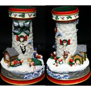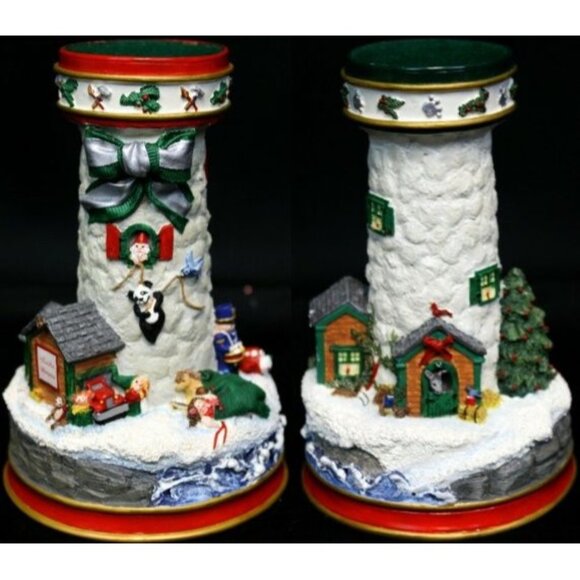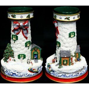 2 Danbury Cheryl Collin Lighthouse Xmas Candlestick Filling Santa Sack Waiting