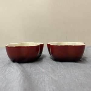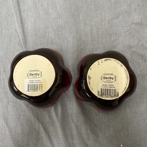 (2) Denby Flower Individual Mini Casserole Dish Cherry Red Discontinued Ramekin