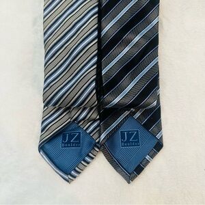 Lot of 2 Men’s J.Z Richards 100% Silk Textured Repp Ties Striped Blue Black Silver Gray Made in USA, Boulder, Colorado. Excellent Gift Idea. #QuietLuxury #Corpcore #Dad #Professional #Designer #OldMoney #reppties #silk