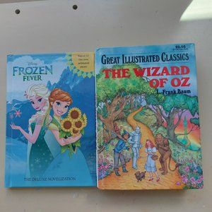 I have these 2 Disney books. One is the Wizard of Oz & the other is Frozen Fever. The Wizard of Oz book is in a wonderful shape other than the green marker & sticker on the first page as shown in the picture. The Frozen Fever book is in excellent shape no markings anywhere.