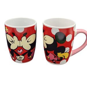 2 Disney Mickey and Minnie Mouse Kissing Coffee Mug Valentines Red Polka Dots