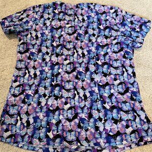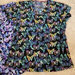 2 Divine Stretch Scrub Top Size M Multicolor Butterflies Pockets Medical Dental