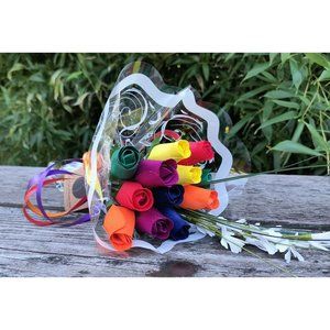 2 Doz Autism Aware Rainbow Wooden Roses Flower Bouquet. The Original Wooden Rose