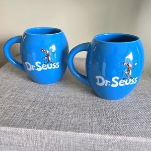 * 2 Dr. Suess Cat In the Hat Red Blue Ceramic Coffee Tea Soup Mugs Cups