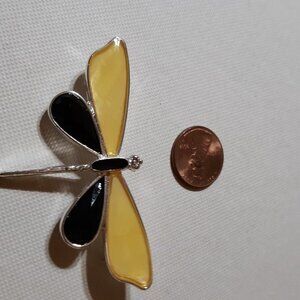 Yellow and Black Dragonfly Pin measures 2 1/2 inches x 1 1/2 inches.and Pink Collectors Dragonfly Pin by Avon Designed by Kenneth Jay Lane Piece Measures 3 1/8" across the wings, 1 5/8" high Adorned with Pink and Crystal Stones
