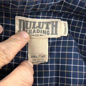 Crafted for durability and style, these Duluth Trading Co shirts boast a classic plaid design, comfortable 100% cotton fabric, and a tailored trim fit for professional wear.