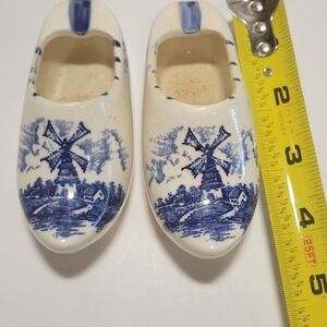 2 Dutch Ceramic Collectable Decorative Blue White 4.5" Mini Klompen Ashtrays