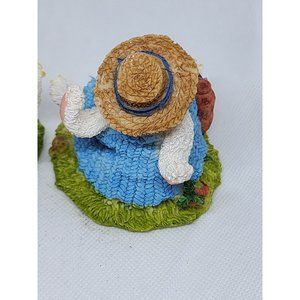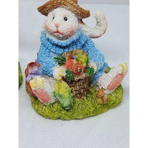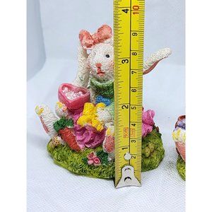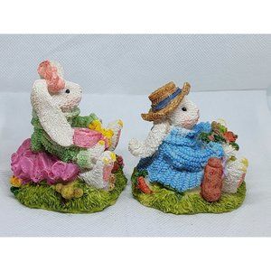 2 Easter Bunny Multicolored Porcelain Rabbit Home Decor Shelf Sitter
