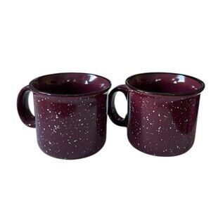 2 Estes Park Large Ceramic Coffee Mug Speckled Maroon White Mountain Cabin Camp
