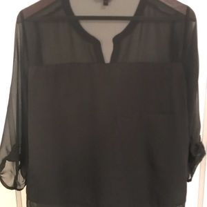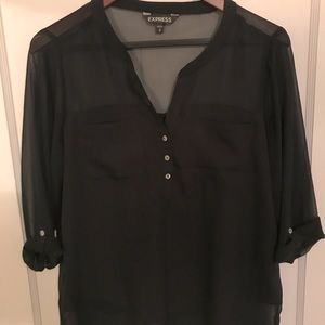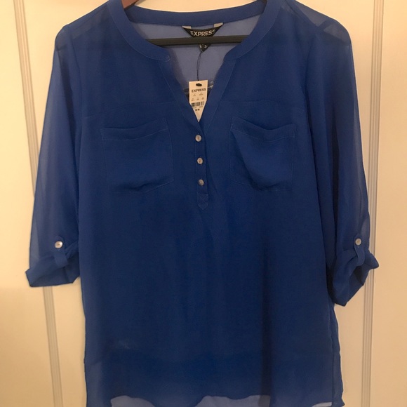 Cute half sheer Express tops. Same shirt style, one is a beautiful royal blue that is NWT and the other is black that in good used condition, only worn a couple times.