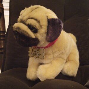 Bundle of two FAO Schwartz plush puppy dogs in nice pre-owned condition. 2018 golden retriever lab and 2020 pug.