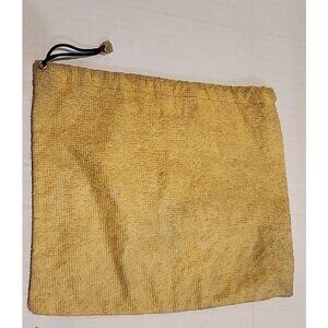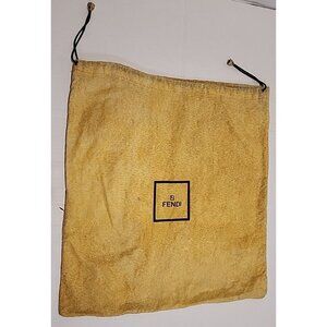 This product is a set of two vintage Fendi dust travel purses, measuring 15 x 15 inches and 9 x 8 inches, made from lightweight yellow cotton cloth with tasseled accents and the brand's logo. Designed for shoe storage or travel, these designer dustbags feature a drawstring closure and are crafted in Italy. Perfect for fashion-forward women looking for stylish and practical accessories to add to their wardrobe.