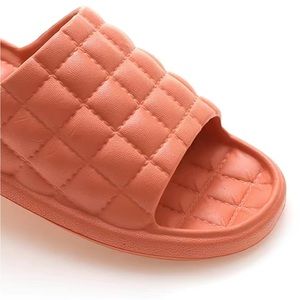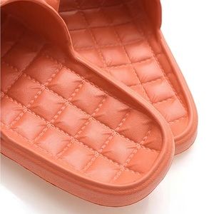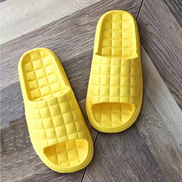 NWT. Quilted slide on scuffs. Sole is thin. This listing is for a yellow pair. US size 6.5-7 CN size 40-41. Made of EVA. Very lightweight, comfy.