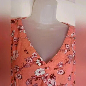 2 FOR 25$ Vibrant peach ST JOHNS BAY floral vneck blouse Dopamine - (#780)