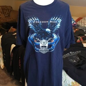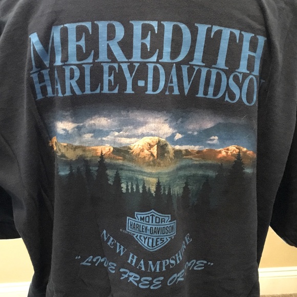 Men’s XL short sleeve t-shirt, blue, Meredith, NH Harley T