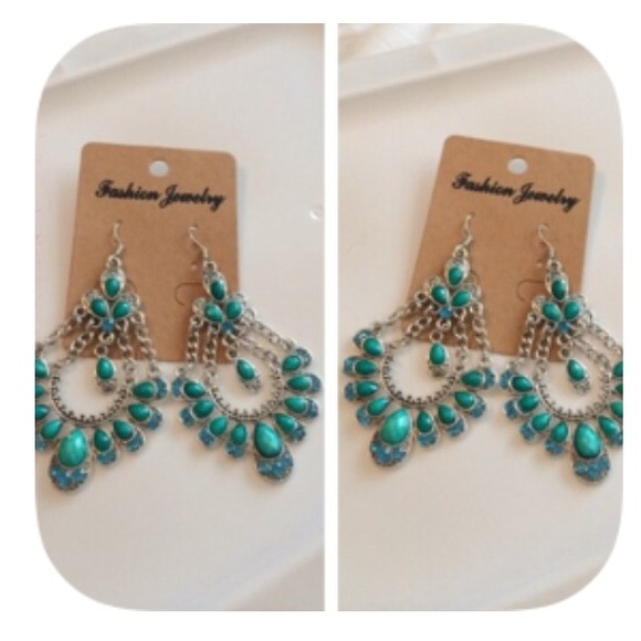 NWT. NEVER WORN! Teal and Silver Earrings.
