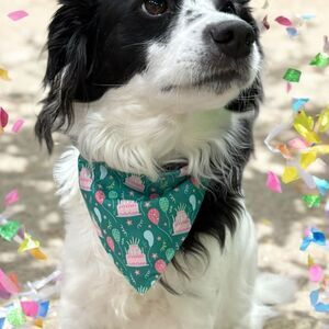 Happy Birthday Bandana for dogs / fits up to medium sized dogs (my dog is ~ 30 lbs) bandanas are brand new (but they don’t have tags)