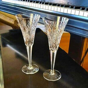 2 Fabulous Waterford Cut Crystal MILLENNIUM Health Series Champagne Flutes