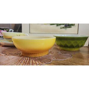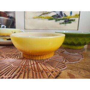 2- Fire King 5" Ombre Bowls, Vintage Kimberly Avocado Green, Yellow Orange