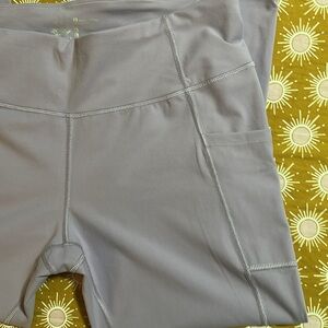 You get 2 pairs of Healthyoga brand leggings for the price of 1. In excellent preowned condition as I may have worn these once. Both pair are size XXL. You get a light pastel purple that has side pockets. The black pair also has side pockets and a small front hidden pocket. No snags, pilling, or stains.