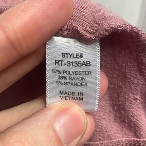This shows some signs of wash and wear, but still has some life left to it. This was purchased from a local boutique and has an oversized fit to it. This looks cute paired with a light kimono. This is like a mauve color.
