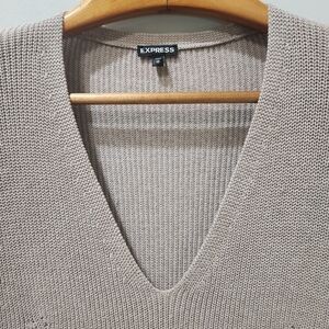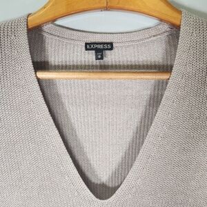 2 For 20 Express Women's V-Neck Sweater - Light Gray 100% Coton