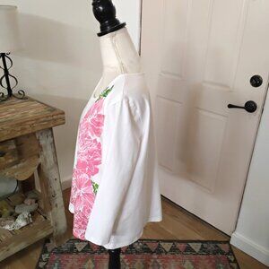This stylish blouse from Ruby Rd. showcases a vibrant pink and green floral design, accented with sequins, on a crisp white background. The 3/4 sleeves add a versatile element, making it perfect for various occasions. Its elegant style and comfortable fit make it a must-have addition to your wardrobe.