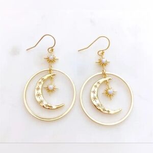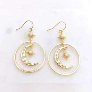 Elegant gold crescent moon earrings with star accents. Perfect for adding a celestial touch to any outfit.