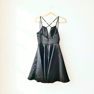 2 For $30 JJ's House Black Satin Spaghetti Criss Cross Flare plunging neckline