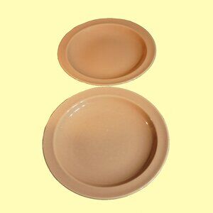 2 Franciscan ware plates made in wheatland CA 12" pink coral color