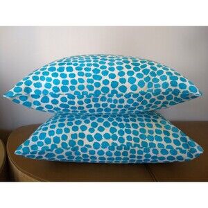 2 GENEVIEVE GORDER Turquoise Dot 20X20 IN/OUTDOOR Zipper Throw Pillow Covers NEW