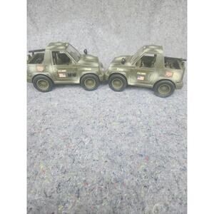GI Joe Battery Operated Toy Jeep US Army 2001 Funrise. Both work but have been played with. Couple of the stickers are peeling but all are there and would be an easy fix