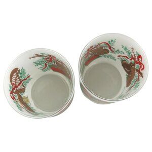 This set of two vintage frosted glasses by Georges Briard features a festive Christmas design adorned with musical instruments and holiday greenery. Ideal for collectors or for adding a touch of elegance to your holiday table setting. The glasses offer both functionality and collectible value.