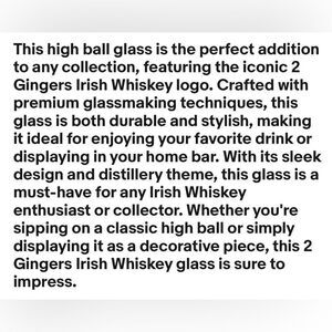 2 Gingers Irish Whiskey Highball Glass 6 1/4 In Tall 3 In Round Clear Brown 16