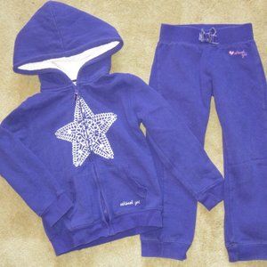 OSH KOSH Purple sweatshirt and pants, top sz. 5, pants sz. 4, hood, zip front, pull on pant
