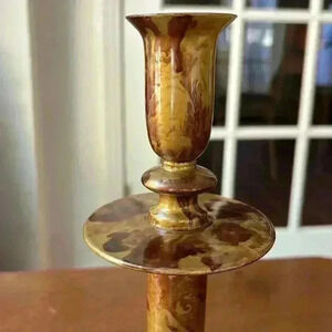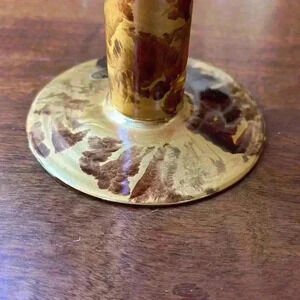 2 Glass Amber Candle Stick Holders/Candle Holders Tortoise Shell Colored