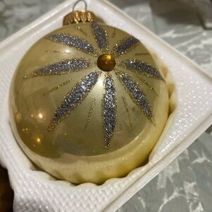 2 Glass Ball Christmas Ornament - Gold Ball With Rhinestones & Glitter W.Germany