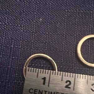 Set of two Gold Baby Rings, I did not find any stamping on either. Your Baby can wear these until they are outgrown and the mother usually wears them on a necklace with other drops or by themselves. Size 11mm all info and specs are to the best of my knowledge