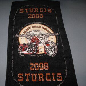 Really nice 2008 Sturgis Rally beach towel with great Harley graphic and nice earth tones. Also, really nice 2008 Sturgis towel with awesome skeleton rider with bright green and yellow graphics. In “like new” condition, displayed for a short time, washed once and stored. Super wall hangings for garage or rec room or use them at the beach. There's nowhere on earth like Sturgis!