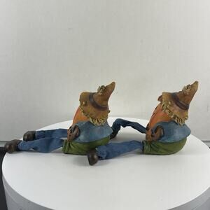 (2) Halloween Pumpkin in Jeans Figurine Shelf Sitter 3.5" Whimsical Decor