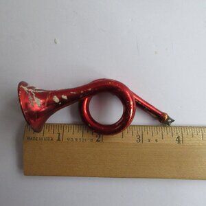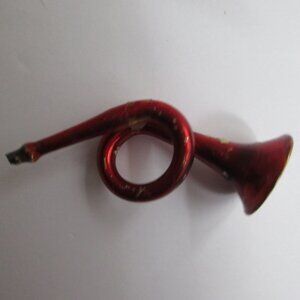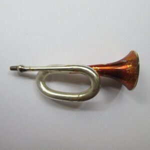 Lot of 2 Vintage /Antique Hand Blown Glass French Horn/Bugle/Trumpet Christmas Ornaments