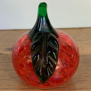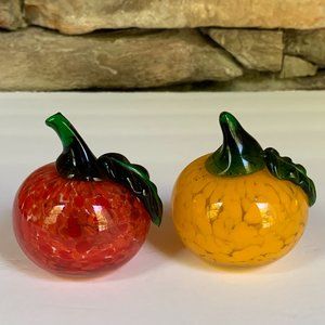 2 Hand Blown Glass Fruit Apple Orange Pumpkin Red Orange Murano -like Art