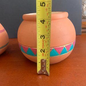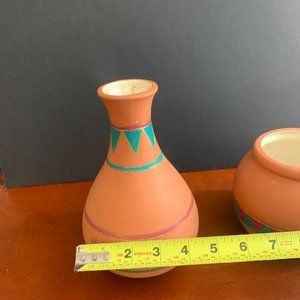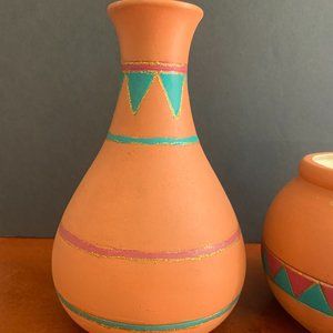 This listing is for 2pc southwestern, handcrafted pottery set with urn shaped vase and bowl. Comes from a smoke-free home but I do have a dog and a cat (noted for those that might have allergies).